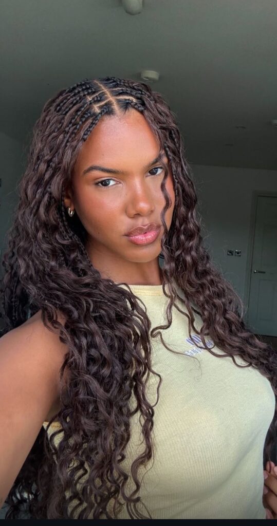 Boho braids are all about that carefree, romantic vibe, the kind that looks like you just stepped out of a tropical vacation photo shoot. Wavy human hair braiding hair adds texture and movement, so your braids don’t just hang; they flow. The waves give you that perfectly imperfect finish, especially if you leave some pieces loose or curled at the ends. This texture works beautifully for goddess braids, knotless styles, and even half-up, half-down braid combos.