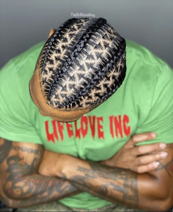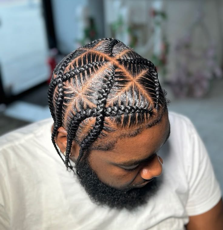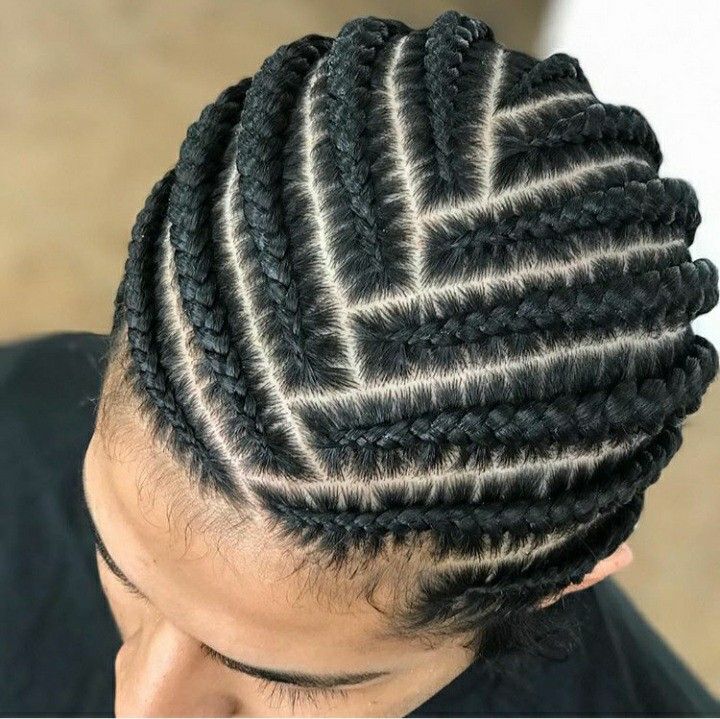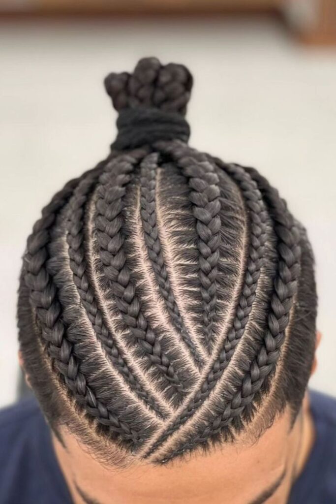 Braided into pointed angles like a chevron pattern, this style offers visual precision and a clean, masculine shape.