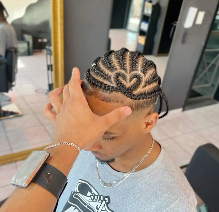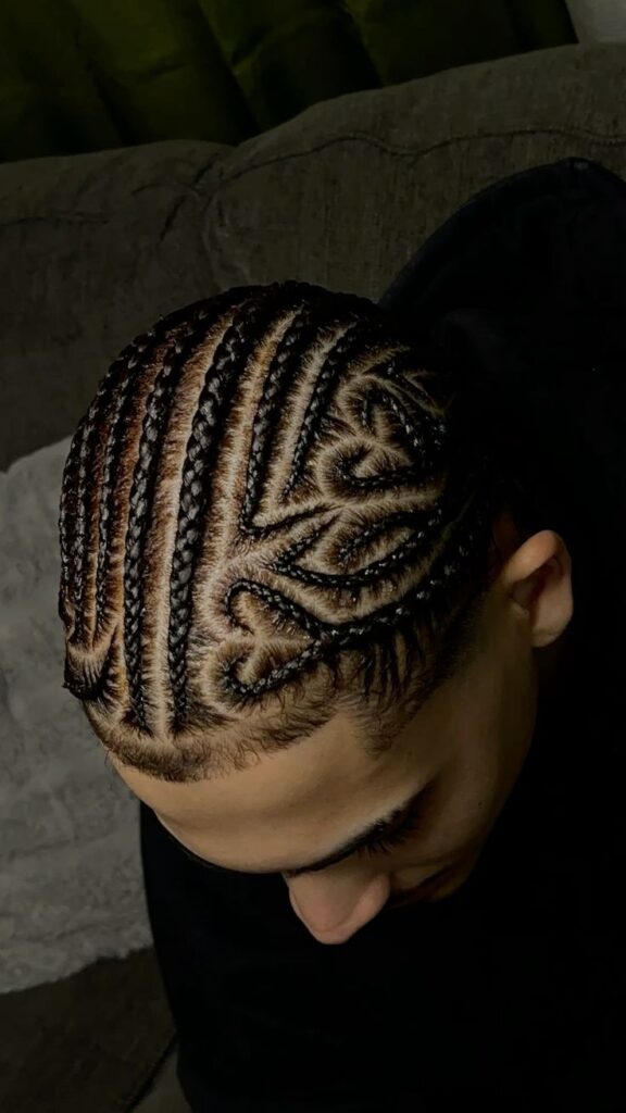 You do not have to be a romantic just at heart, your hairstyle can show it too. Adding a heart-shaped cornrow into the mix gives off a bold style and is perfect for romantic flair or personal symbolism.