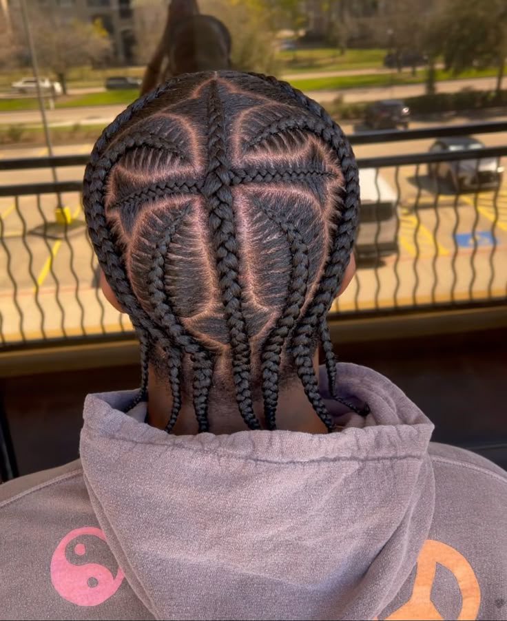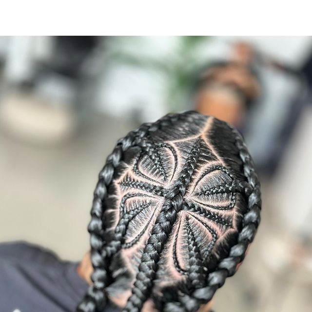 Inspired by the structure of a spider’s web, this circular pattern is all about symmetry and bold center-point braiding. It’s a great conversation starter and works for medium to long hair lengths.