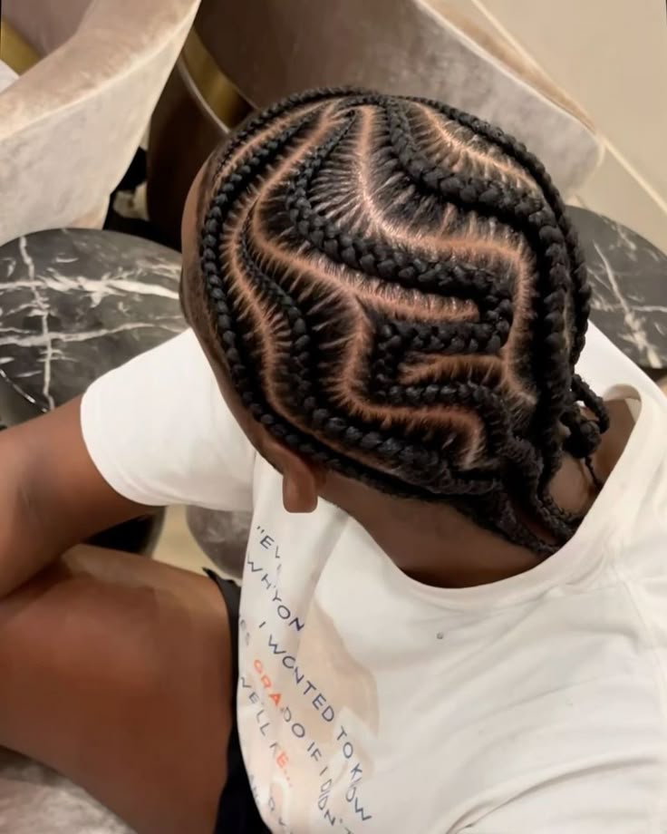 Curved partings and creative stitching make these braids ripple like waves across the scalp—a striking visual effect.