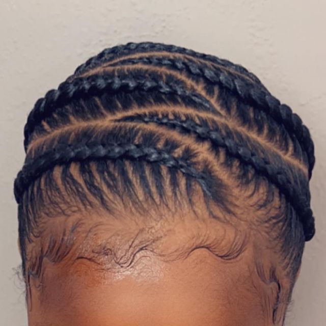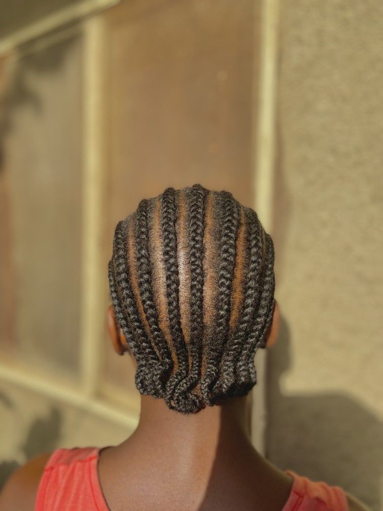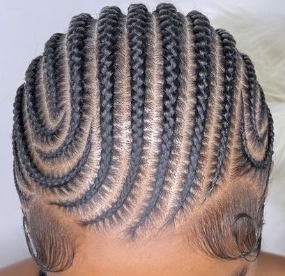 Curved cornrows bring softness and movement to your style. By following the natural shape of your head or arching rows around your crown, you create a more organic, flowing look. This pattern flatters most face shapes and can be styled into buns, ponytails, or left as-is for a chic, head-turning finish.