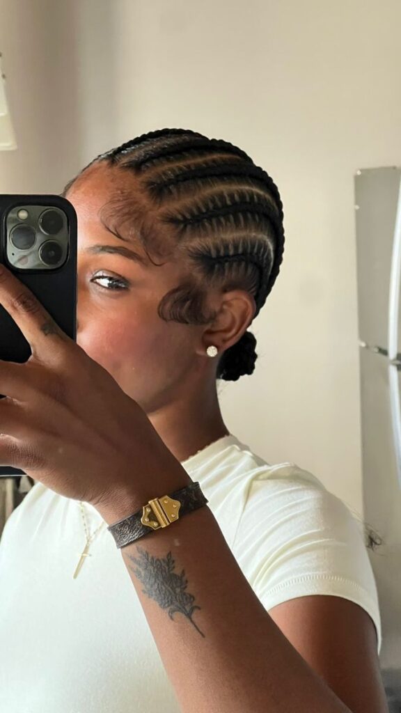 The best part? You don’t need long hair to pull them off. Whether your hair is short, medium, or long, there’s a cornrow style that works perfectly without adding a single braid pack. You’ll still get the sleek look, the protective benefits, and the versatility — minus the install time.