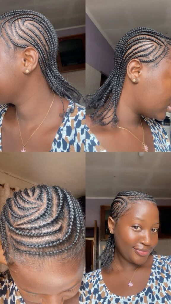 Short hair is no obstacle for sleek, stylish cornrows. Mini cornrows are small, neat braids that hold short strands in place while giving a clean, polished finish. They work especially well for active lifestyles since they stay secure. Adding a side part can instantly elevate the look, giving you an asymmetrical edge that flatters your face shape and makes the style feel intentional.