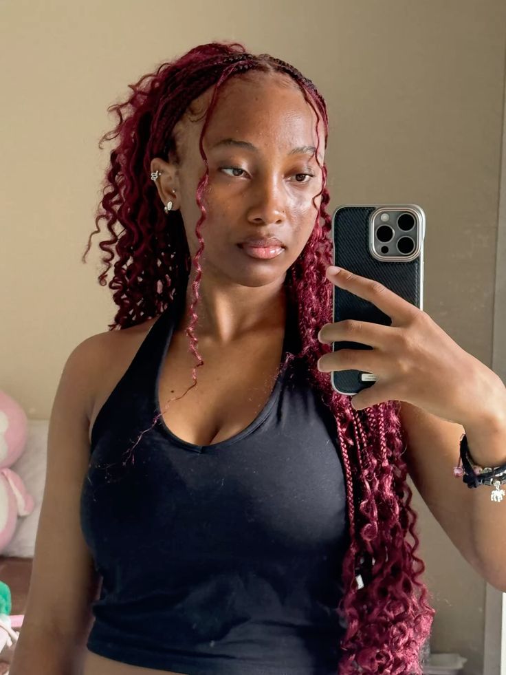 12. Burgundy Box Braids
