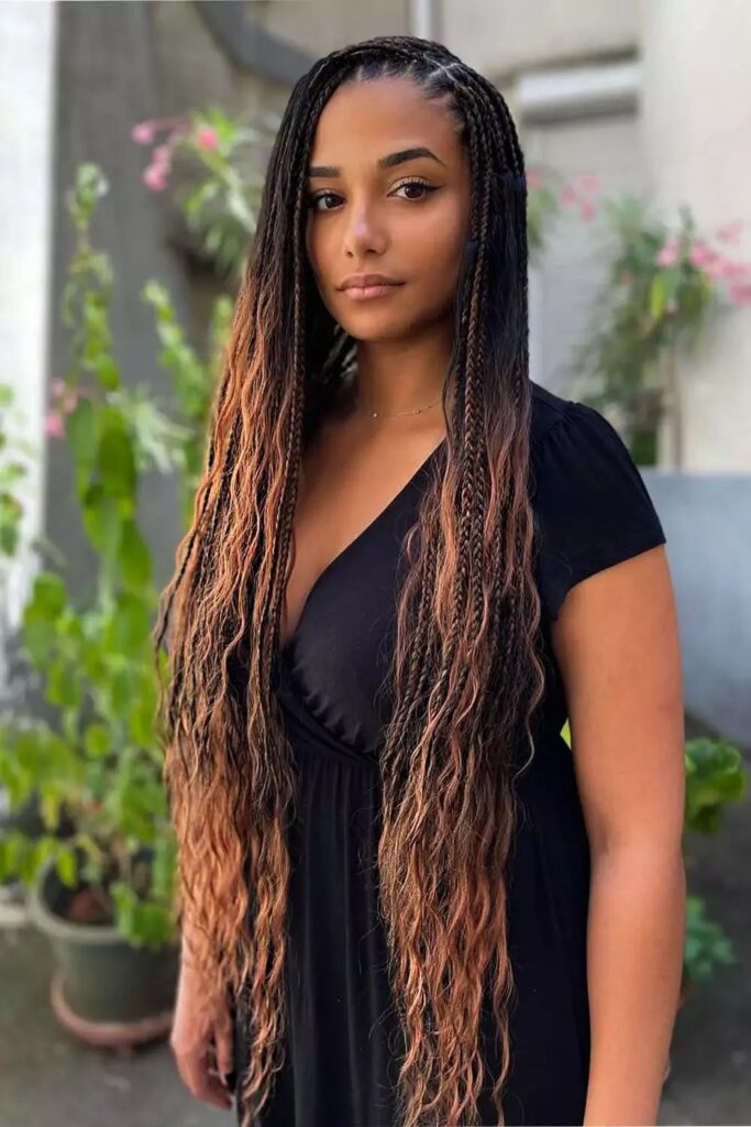 20. Long Box Braids with Curly Ends