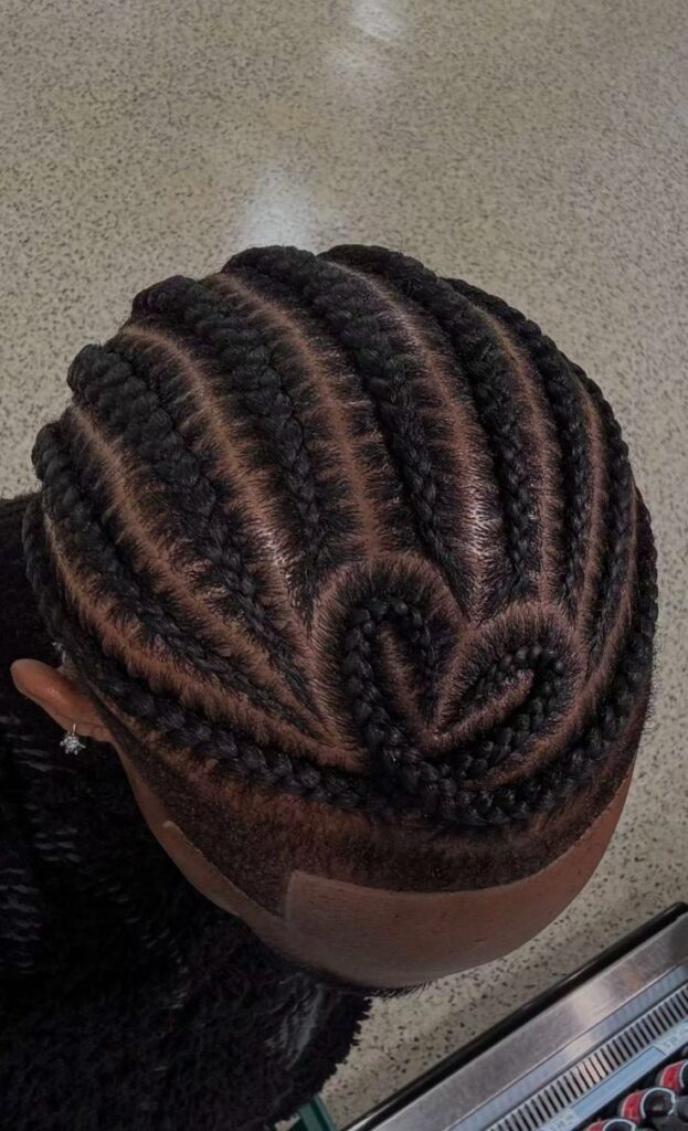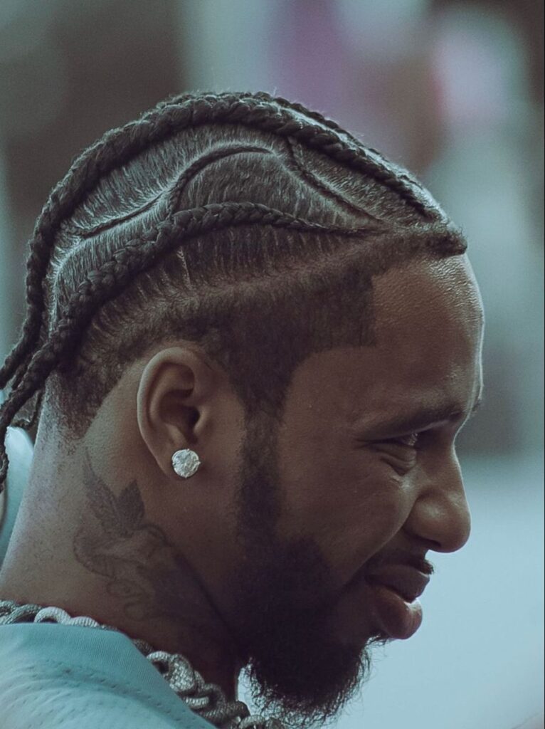 Another reason cornrows hit hard in work settings is versatility. They sit flat and structured, which means you can easily rock them with button-downs, suits, polos, or even uniforms without your hair getting in the way. Add a fresh line-up around the hairline, and you’ll look like you just stepped out of a GQ spread—except it’s Monday morning, and you’re on your way to a team meeting.