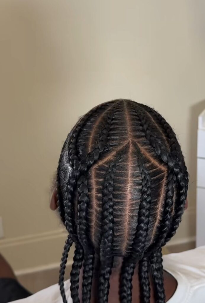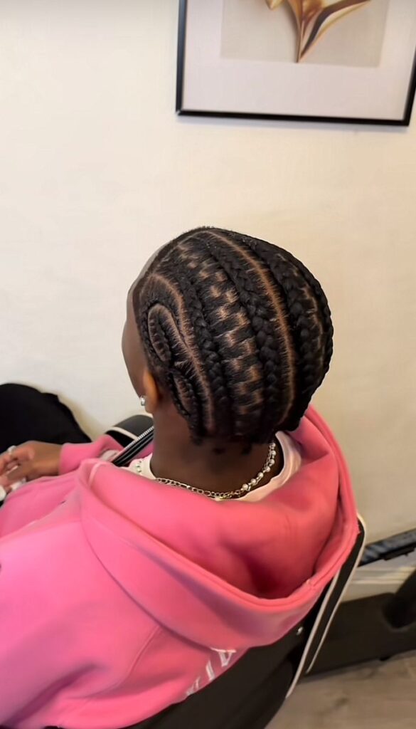There’s also room to switch it up within this classic look. Try a middle part for a balanced, bold statement—it gives major boss energy. Prefer something with a little edge? Go for side parts or slightly curved lines to add just enough character without tipping over into “too casual.” The trick is in the tightness of the braids and the precision of your parts. Ask your loctician or braider to keep the lines crisp and the ends neatly tucked or tapered—no strays, no frizz.