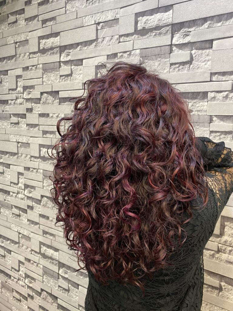 This balayage blends mocha brown with berry highlights so seamlessly that it looks like your natural hair just magically developed dimension. The berry tones are softly brushed through the mid-lengths and ends, giving warm, rich movement without harsh lines. It’s a gorgeous, lived-in style that flatters curly, wavy, and straight textures. Perfect for beginners, busy bees, or anyone who loves a “natural but better” vibe.