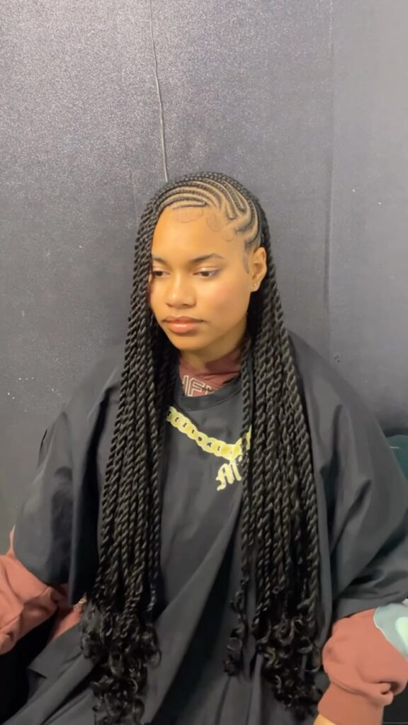This intricate twist instantly upgrades your braid game. It’s one of those looks that make people ask, “Who did your hair?” Bonus: it’s perfect for keeping your braids secured while still looking fancy.