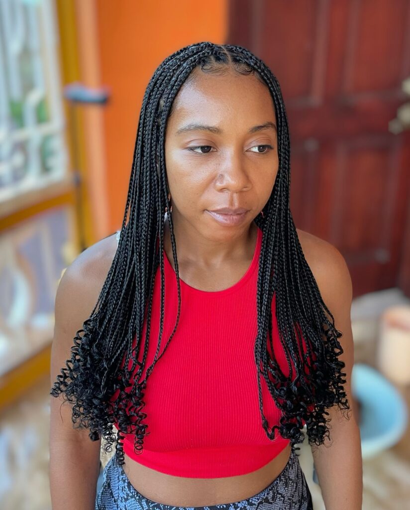 Soft curls at the ends bring a feminine twist to your braids. You can use perm rods or flexi rods to get those bouncy tips. It’s a subtle detail that adds instant dimension and movement.