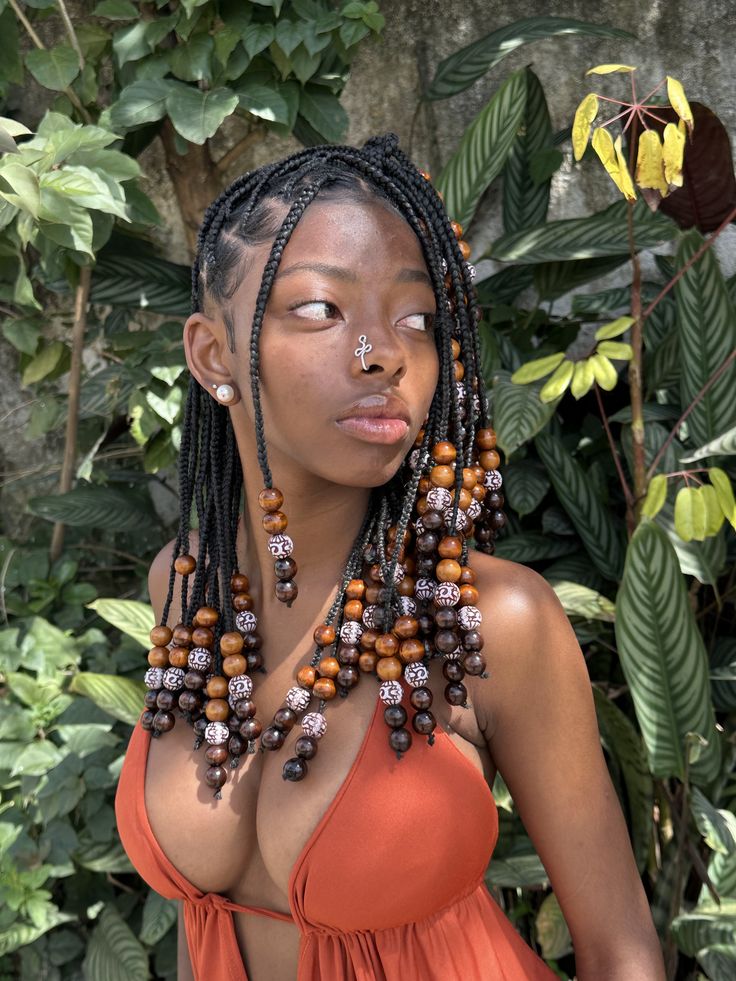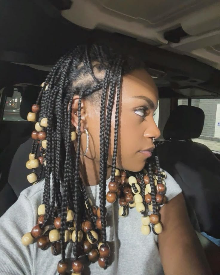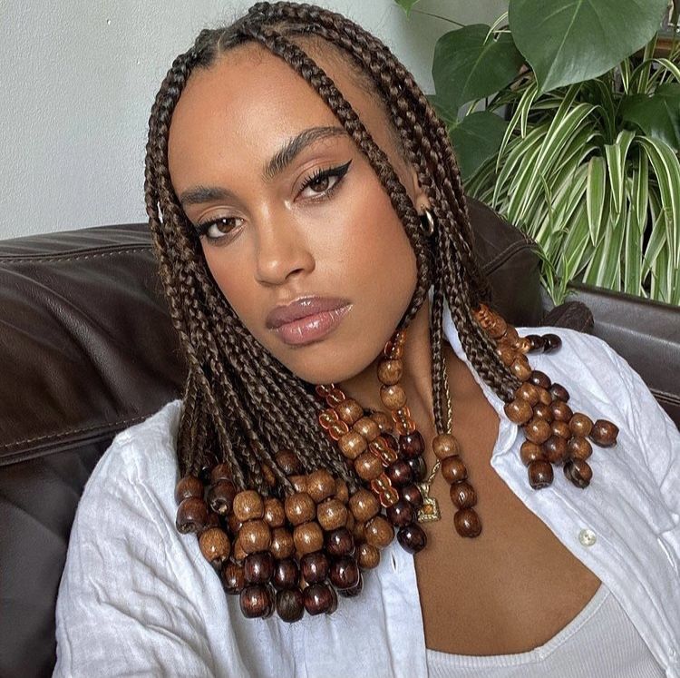 Wooden beads are perfect if you love warm, earthy visuals. They complement melanin-rich skin beautifully and pair well with natural makeup looks or neutral outfits. Wooden beads also give your braids a grounded, boho feel, making them ideal for women who prefer a soft, effortless, and slightly Afrocentric aesthetic.
