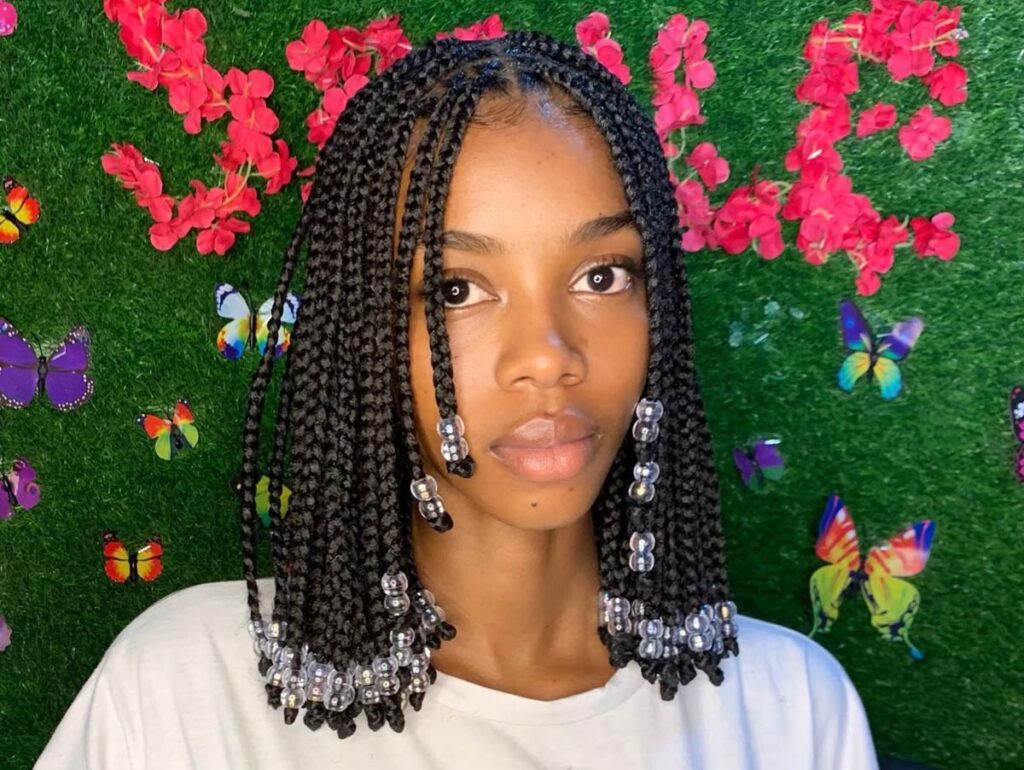 1. Bob-Length Knotless Braids with Clear Beads