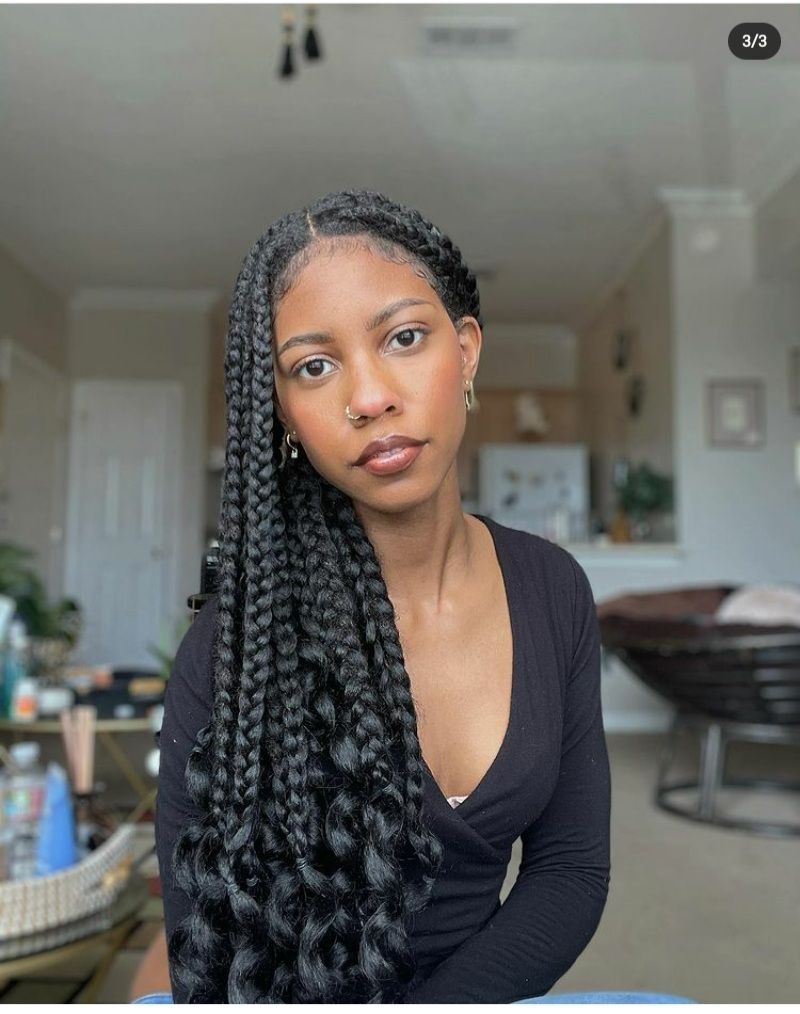 Chunky braids make a bold statement. They’re dramatic, stylish, and perfect if you want to showcase your length and volume without too many braids weighing you down. Great for anyone who loves high-impact, minimal-effort style.