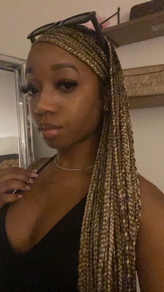 Adding a headband to medium box braids keeps your front neat and controlled while also giving a sporty, chic vibe. Ideal for yoga, gym sessions, or even casual coffee runs.