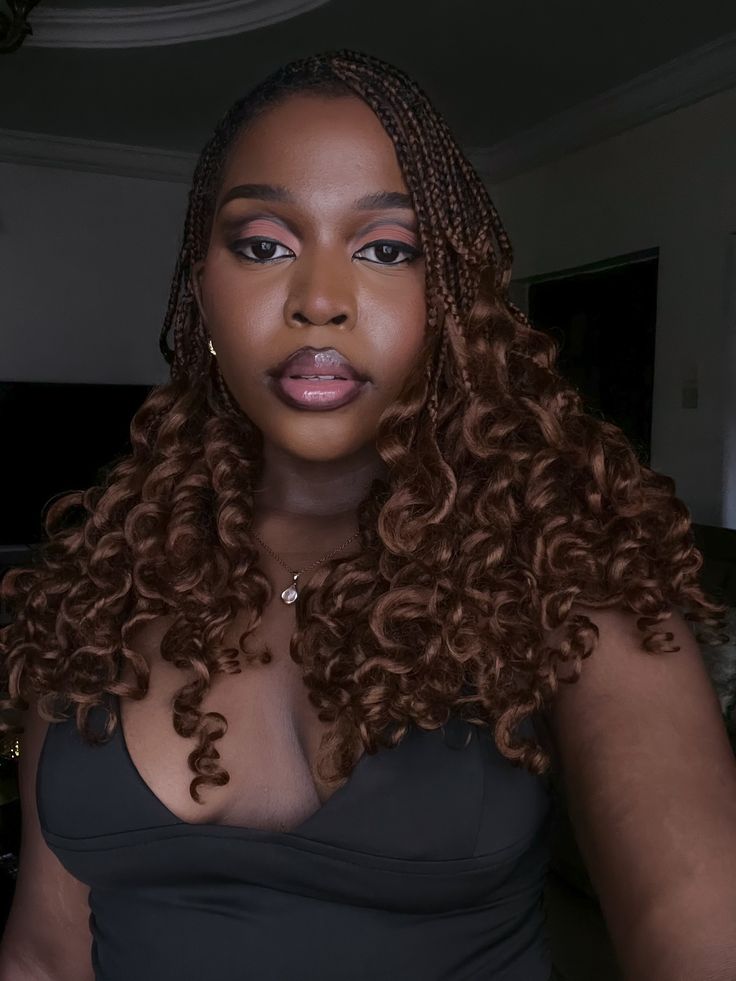 Adding metallic highlights adds depth, shine, and dimension. Gold and bronze accents make medium box braids perfect for events where lighting will highlight your hair. Pair with sleek buns or waves for a polished, red-carpet-ready look.