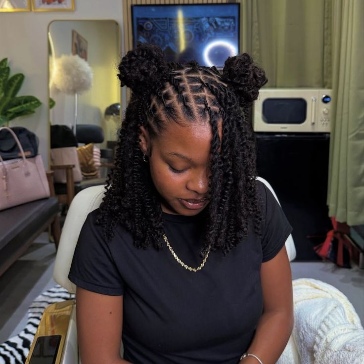 8. Double Puffs with Medium Braids
