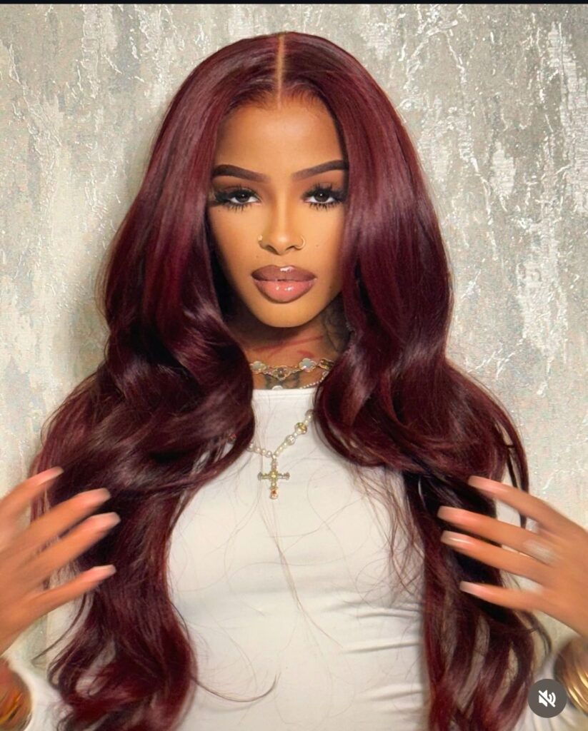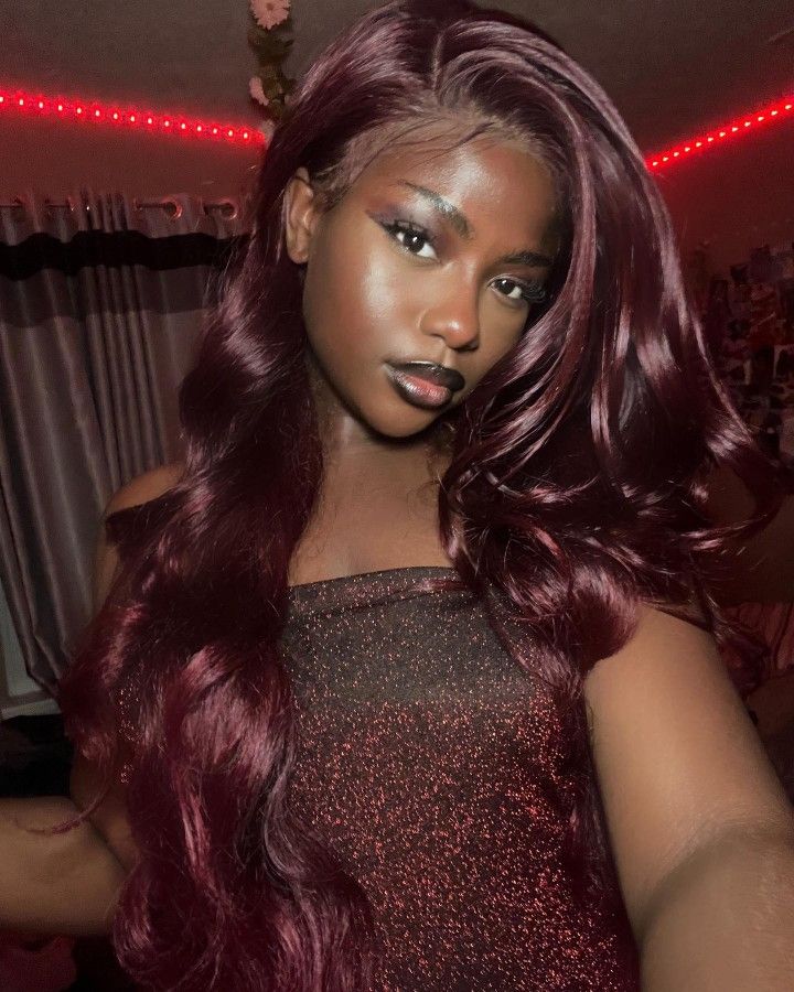 As the name suggests, this shade is pure indulgence. Wine red hair gives that deep, glossy burgundy look with hints of violet—smooth, rich, and velvety. It’s perfect for fall or winter and pairs beautifully with neutral or gold outfits. If you want to look like luxury itself, this is your shade. Just a light curl or a silk press will make it gleam like liquid wine under light.