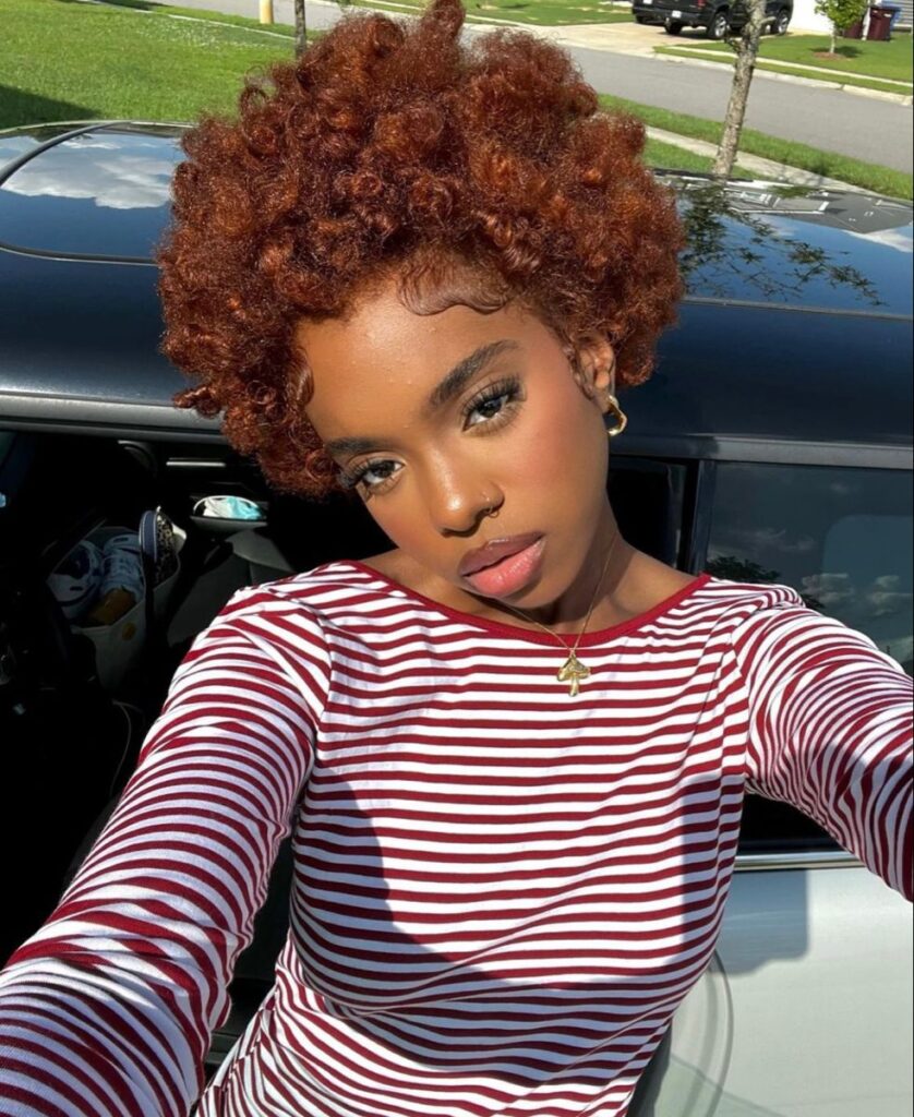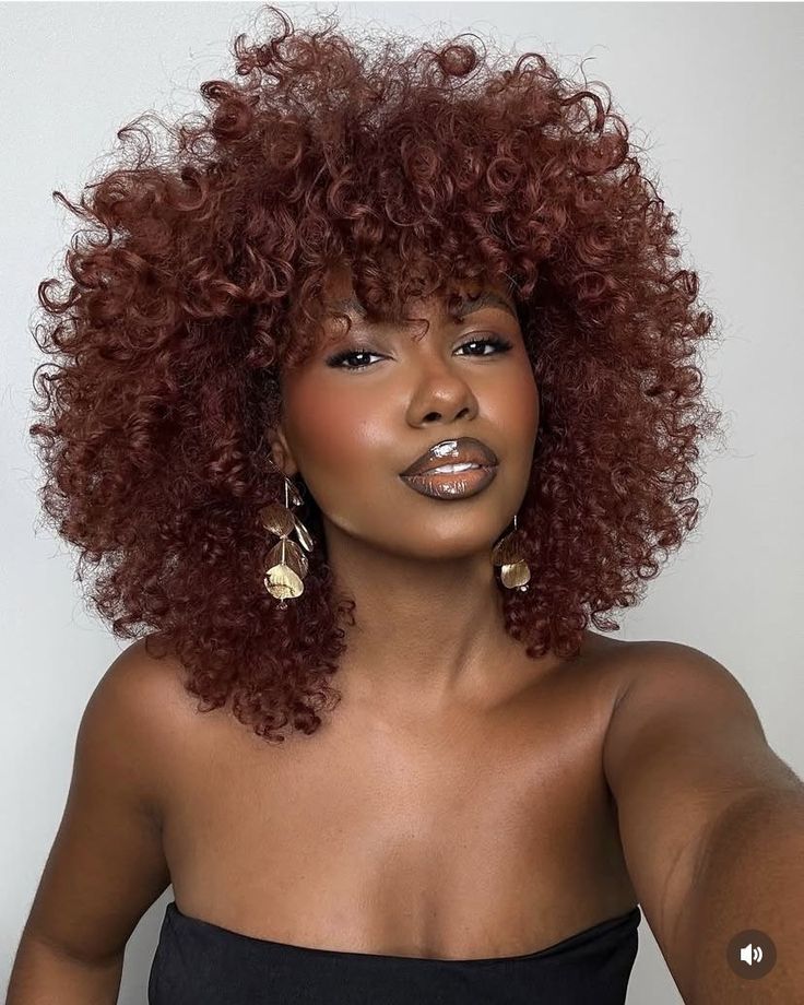 Burnt orange is for the brave. It’s bold, edgy, and practically screams confidence. This color leans heavily toward orange undertones, giving your red hair an almost neon glow that looks unreal under the sun. It’s especially flattering on medium to dark skin tones and makes curls and coils pop with dimension. Just be ready to moisturize—this shade needs hydration to stay vibrant and healthy-looking.