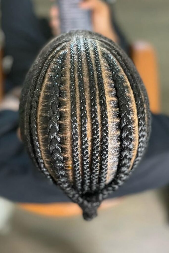 This grid-like layout gives the style a geometric appeal and makes room for versatile styling—think straight backs, curved rows, or mixed-size braids. It’s a style that balances creativity with structure.