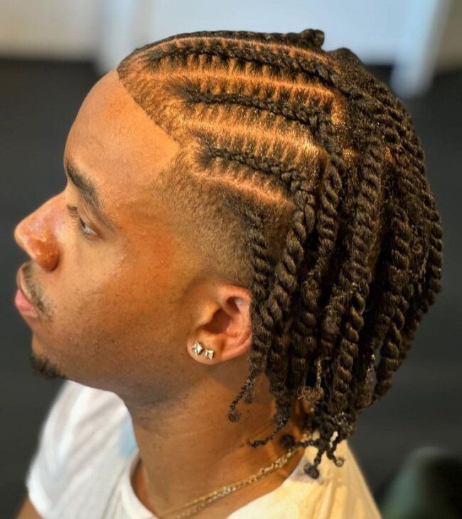 Combining the structure of cornrows with the texture of twists, this hybrid style offers a unique and textured appearance.