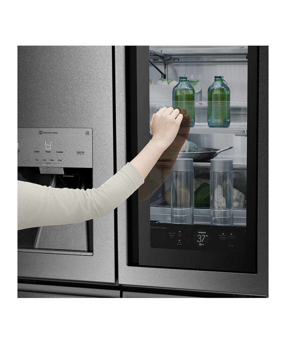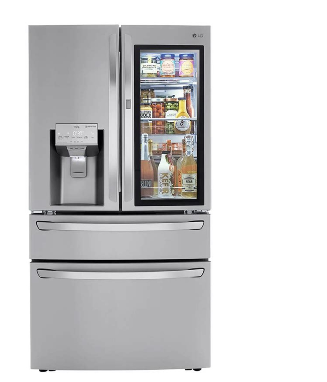 Some LG refrigerators come with the glass panel that lights up when you knock, and some don’t. If that “knock knock” feature is a must for you (because yes, it’s that cool), double-check the model specs.